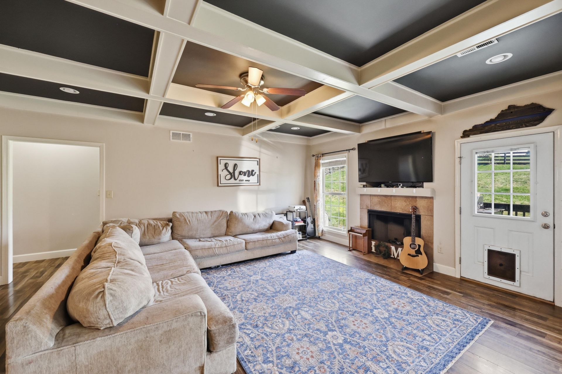 Welcome to Running Brook Subdivision! Built in 2018, this 4 bedroom, 2.5 bath home has around 2,250 sq ft and sits on just over half an acre. If you need space and want to be convenient to both Lawrenceburg and Frankfort, this one checks the boxes. The main level offers a great open floor plan with a great room featuring coffered ceilings, dining area, and kitchen all flowing together. The kitchen has bar seating, a pantry, and appliances that stay. The primary suite is on the main floor and includes a double vanity, soaking tub, and separate shower. You'll also find two additional bedrooms, a full bath, utility room, and access to the attached 2 car garage on the main level. Upstairs gives you even more flexibility with a 4th bedroom and half bath that would make a great guest space, office, or bonus room. Outside, the fenced backyard has a deck and plenty of room to enjoy. Homes with this much space, in this location, don't last long!